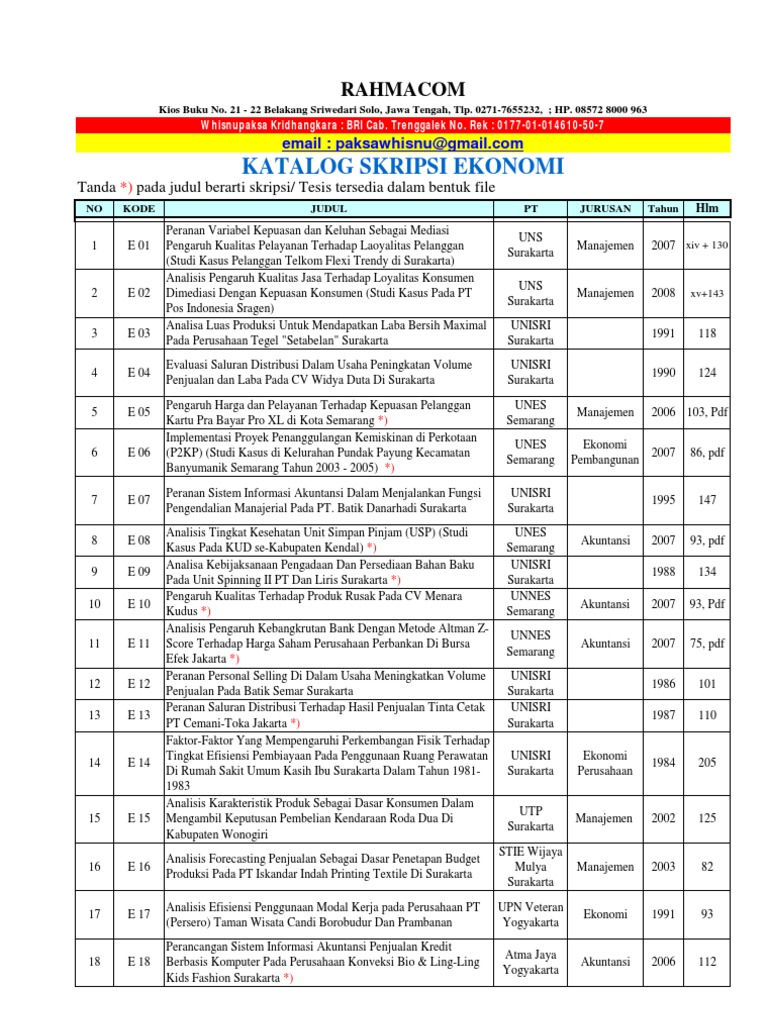 Daftar Judul Contoh Contoh Skripsi Ekonomi Akuntansi Kode E 1