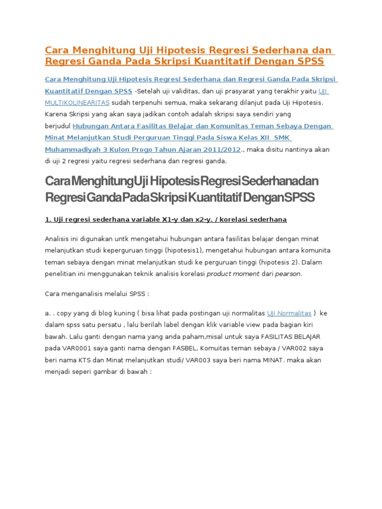 Uji Regresi Sederhana Dengan Spss Lengkap Pdf Document
